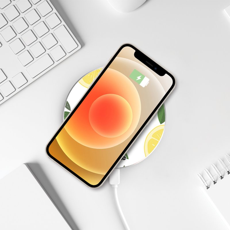 • Chargeur Induction contour argent blanc Citrons Evetane