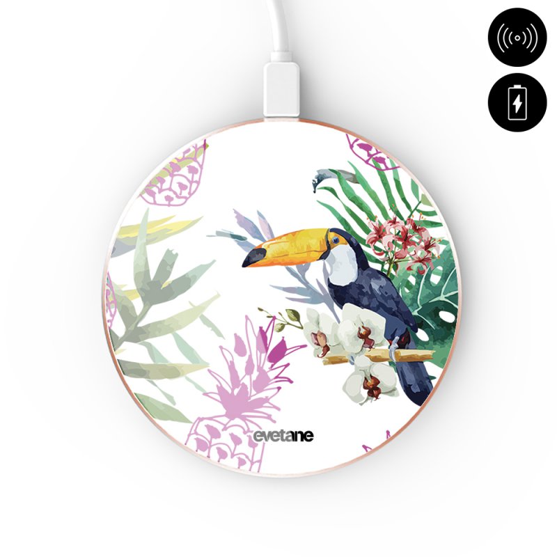 • > High Tech>Charge>Chargeur induction>Chargeur Induction contour gold blanc Jungle Tropicale Evetane