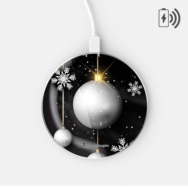 Chargeur Induction contour argent blanc Boules Etoiles Noel neiges La Coque Francaise