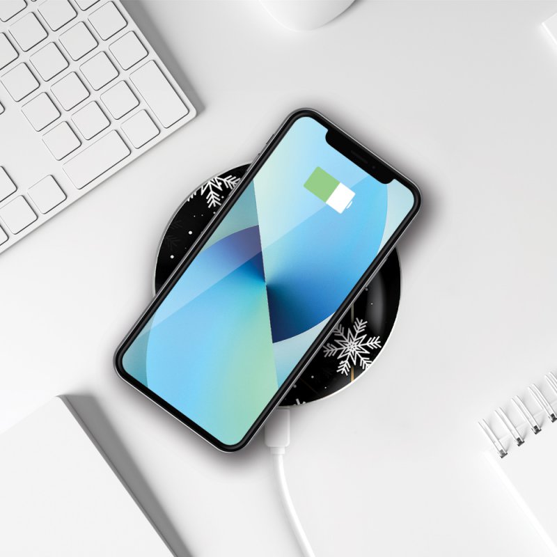 • > High Tech>Charge>Chargeur induction>Chargeur Induction contour argent blanc Boules Etoiles Noel neiges La Coque Francaise