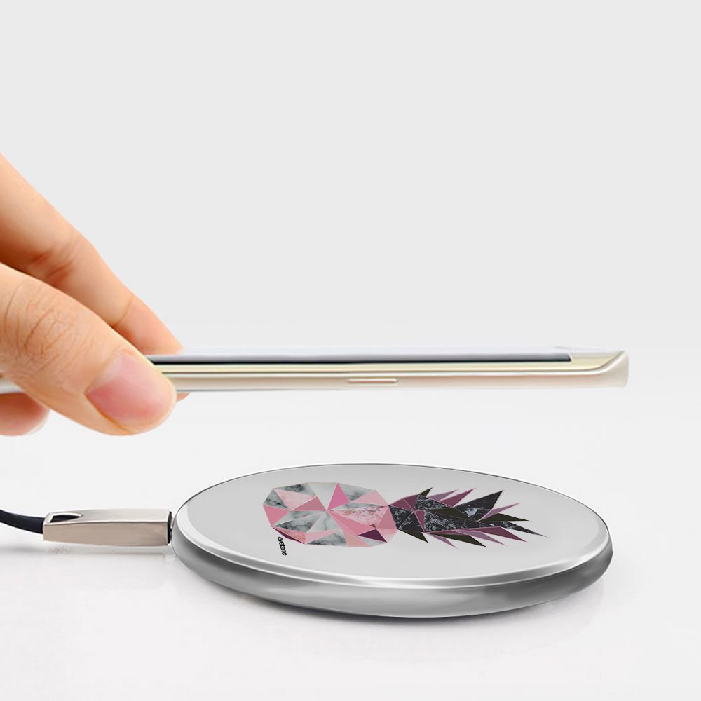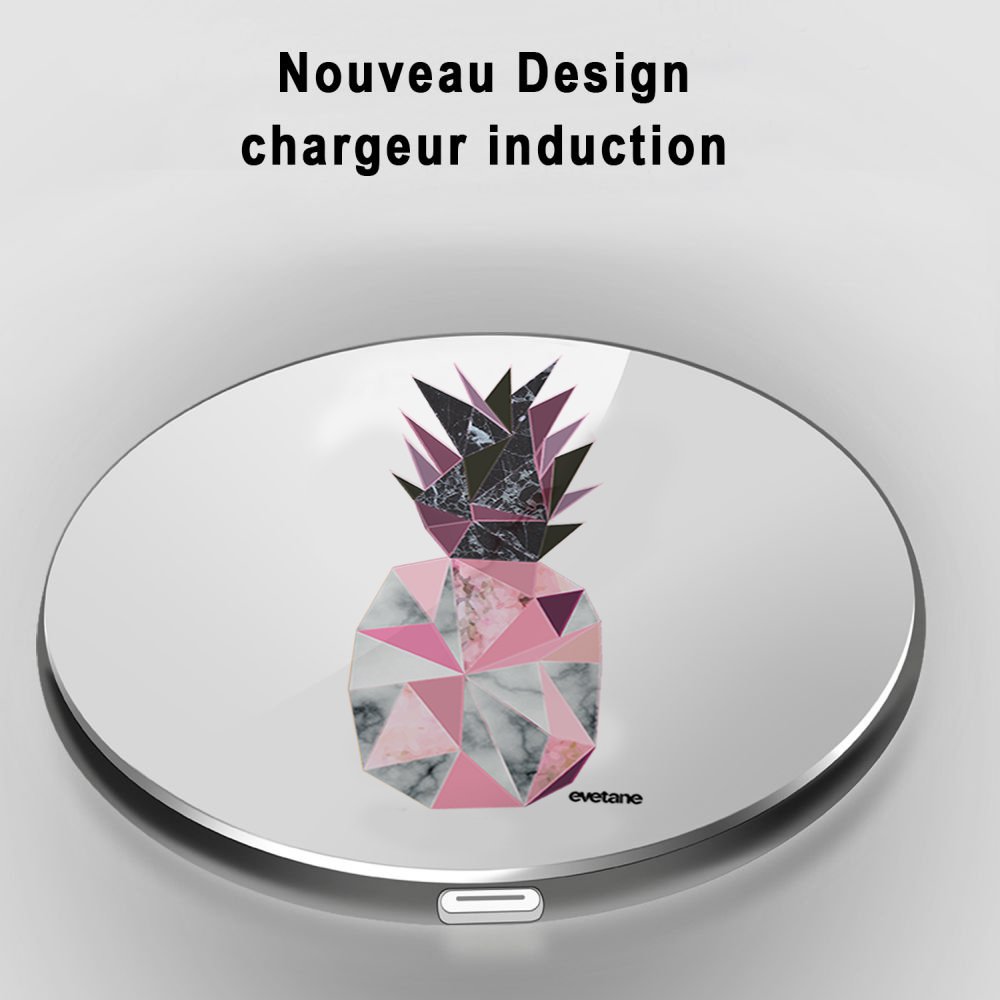 • Chargeur Induction contour argent blanc Ananas geometrique marbre Evetane