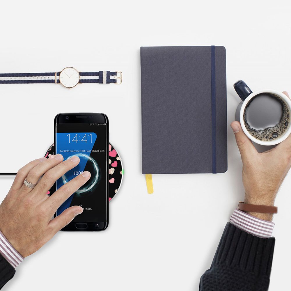 • Chargeur sans fil à induction noir Coeurs en confettis