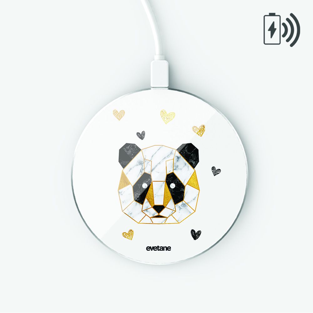 • Chargeur Induction blanc Panda Géométrique Ecriture Tendance et Design Evetane