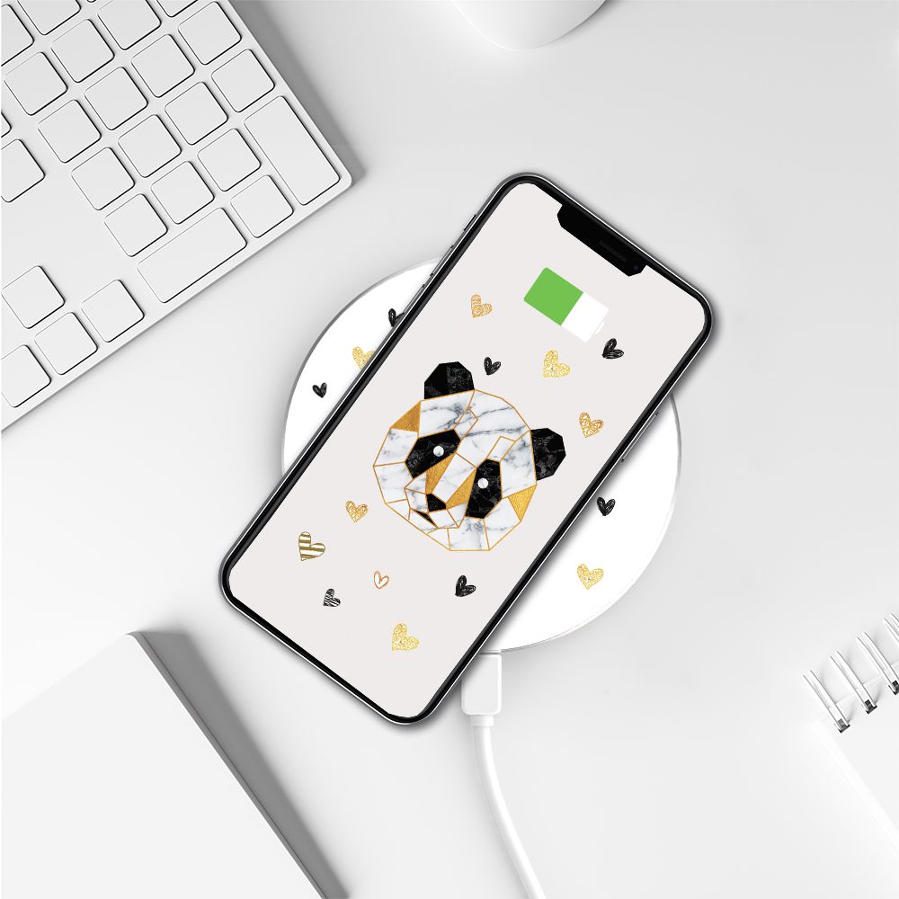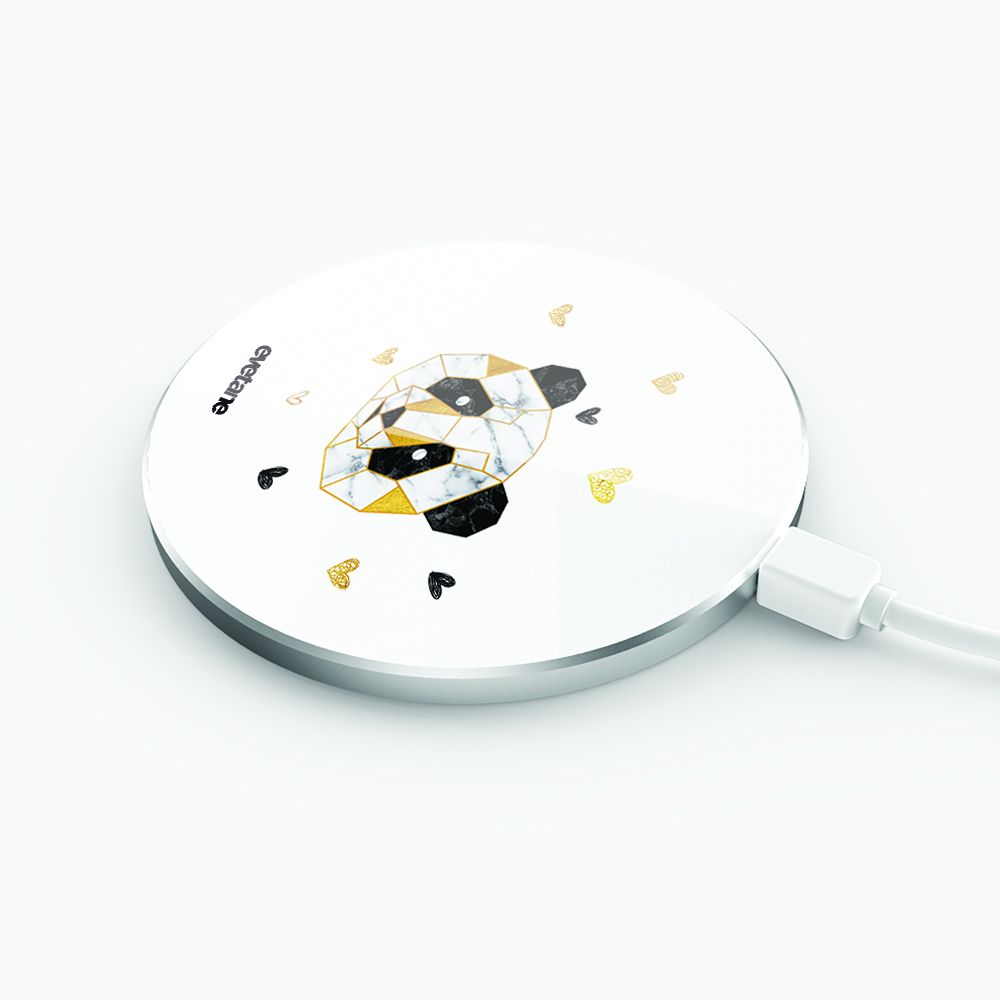 • > High Tech>Charge>Chargeur induction>Chargeur Induction contour argent blanc Panda Géométrique Evetane