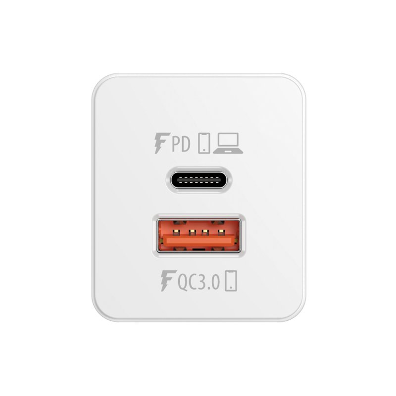 Chargeur PD+ QC 3.0 GaN 1x USB 1x USB-C 65W blanc