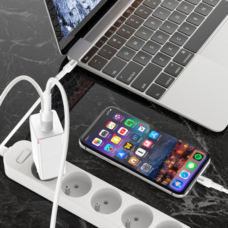 • > High Tech>Charge>Chargeur secteur>Chargeur PD+ QC 3.0 GaN 1x USB 1x USB-C 65W blanc