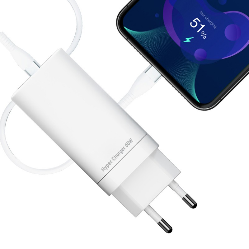 • Chargeur PD+ QC 3.0 GaN 1x USB 1x USB-C 65W blanc