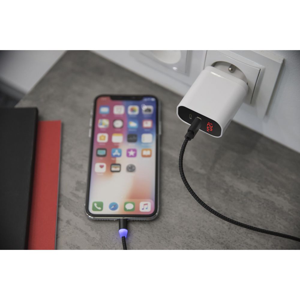 Chargeur secteur ultra-rapide rapide avec afficheur LCD intégré 20W Double Port Type C+1 Port USB