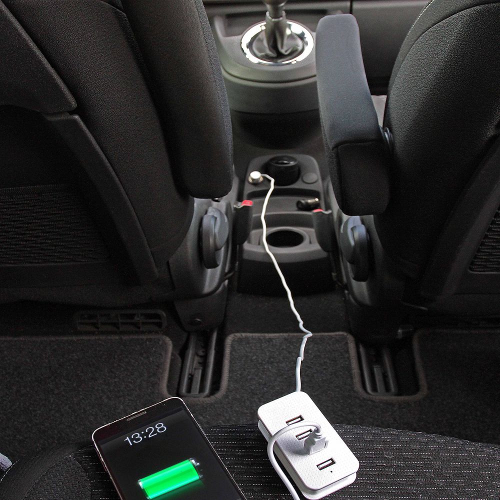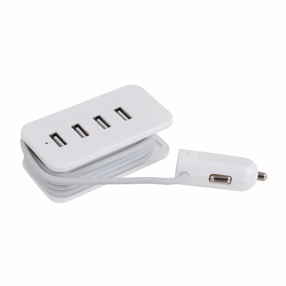 • > High Tech>Charge>Chargeur voiture>Adaptateur allume-cigare 4 USB à rallonge - Blanc
