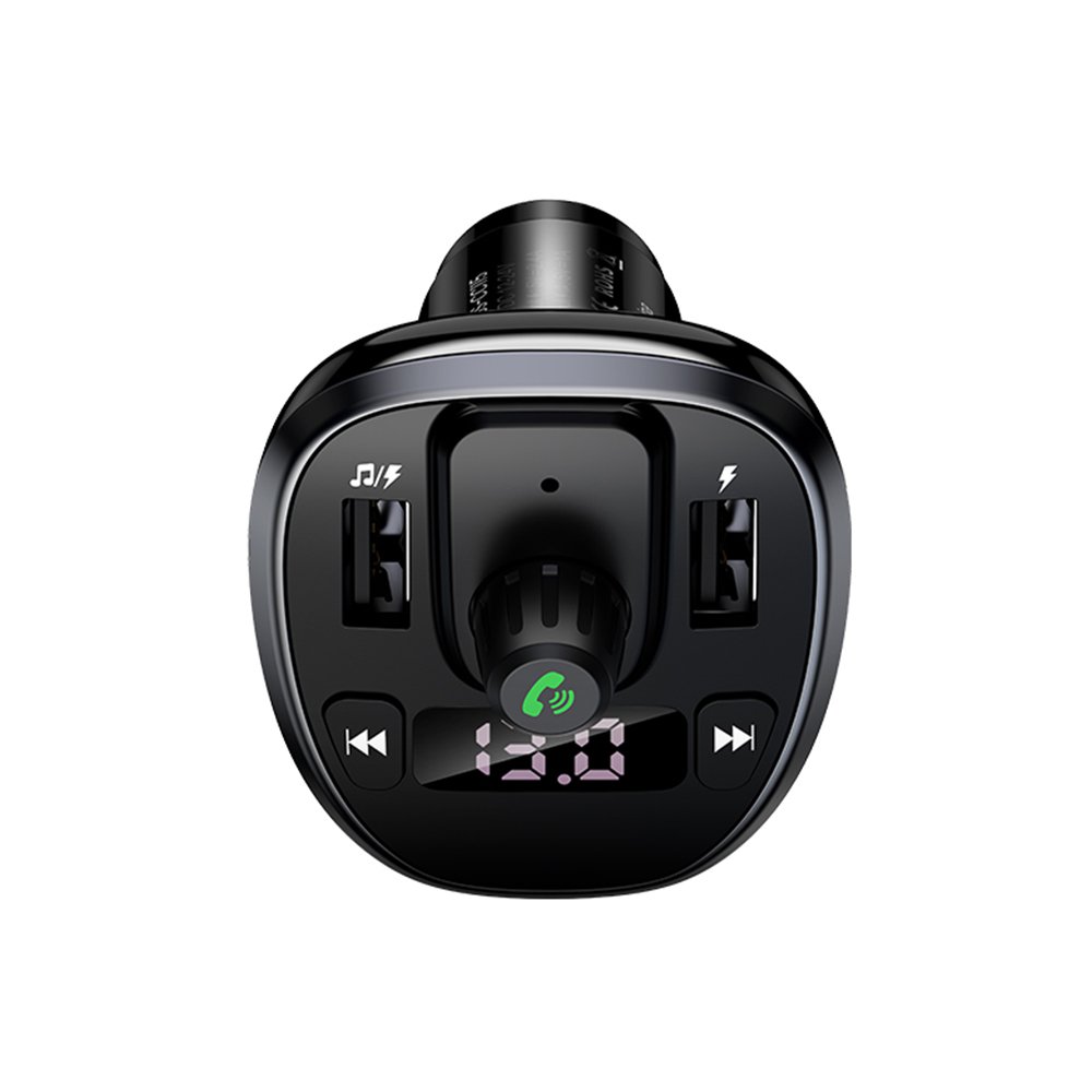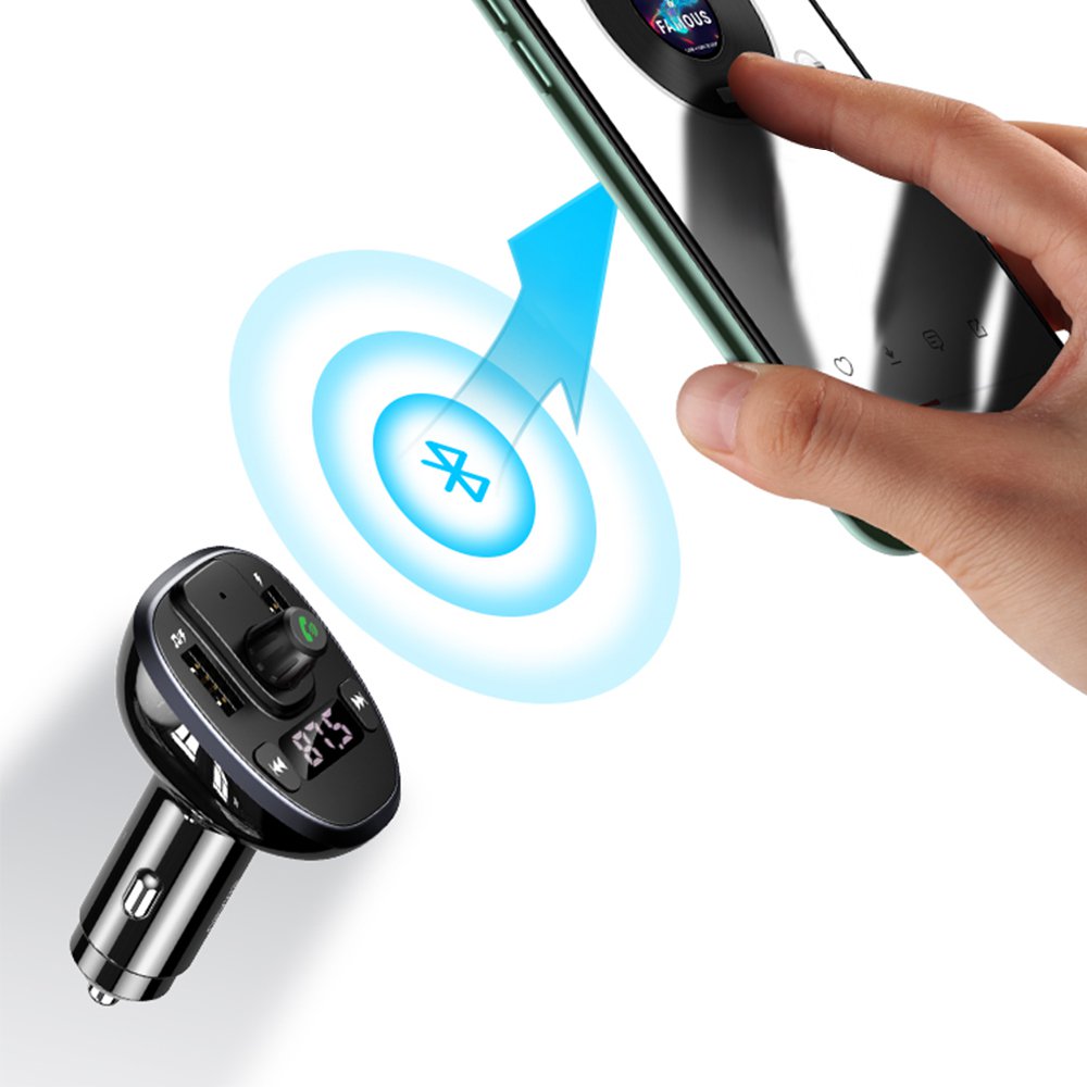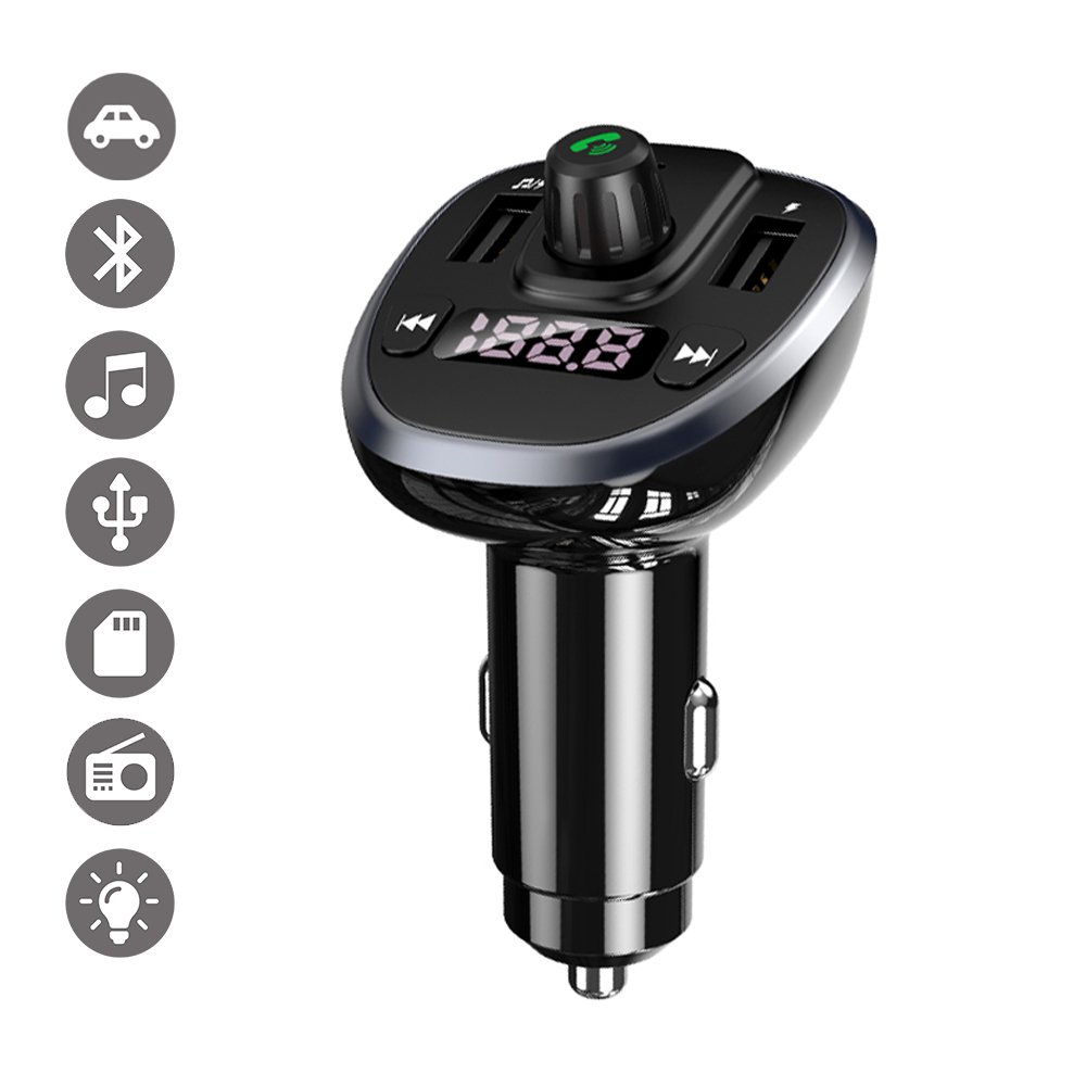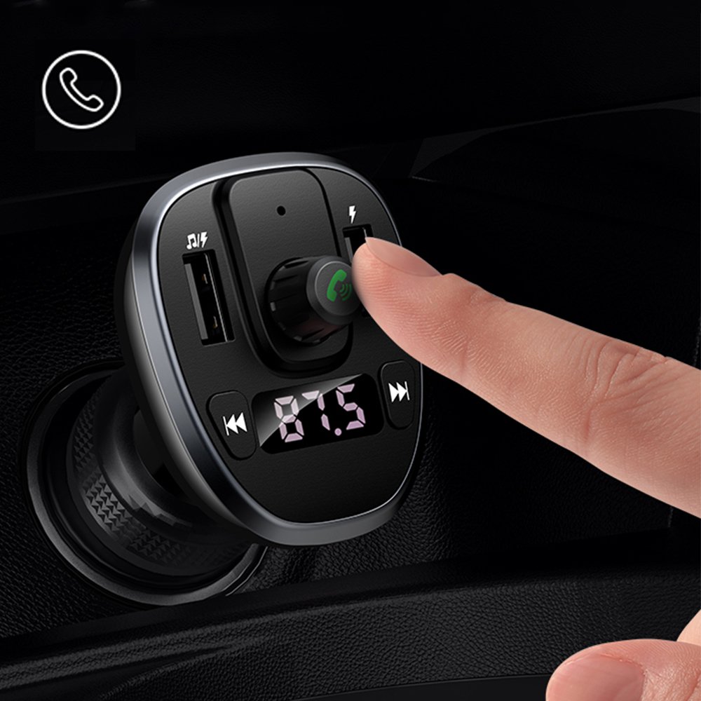 Chargeur de voiture FM affichage numérique Double USB 3.4A Noir .Ce chargeur est à la fois compatible avec le bluetooth, une clé USB, Un carte mémoir SD tout en chargeant vos appareils. Vous pouvez passer vos appels en toute sécurité lors de votre conduite. Après une première connexion, le chargeur une fois allumé règle automatiquement le son, la station FM choisi ou encore la dernière chanson écoutée (grâce à sa fonction mémoire) ... Vous pouvez donc écoutez votre propre musique grâce aux diverses fonctionnalités du produit. Il vous suffit de placer le produit dans l'allume-cigare de votre voiture, une station radio vous ai donné par l'appareil, il vous suffit ensuite de la choisir sur votre auto-radio (il est possible que vous deviez la changer la station radio car celle-ci est indisponible), activez votre bluetooth et connectez l'appareil à votre téléphone. Vous pouvez ainsi déclencher votre playlist.Vous pouvez mettre lecture/pause; raccrocher/ répondre à un appel avec une courte pression sur le bouton central, régler le volume en tournant le bouton principal, passez à la chanson suivante ou précédente grâce aux différents boutons.