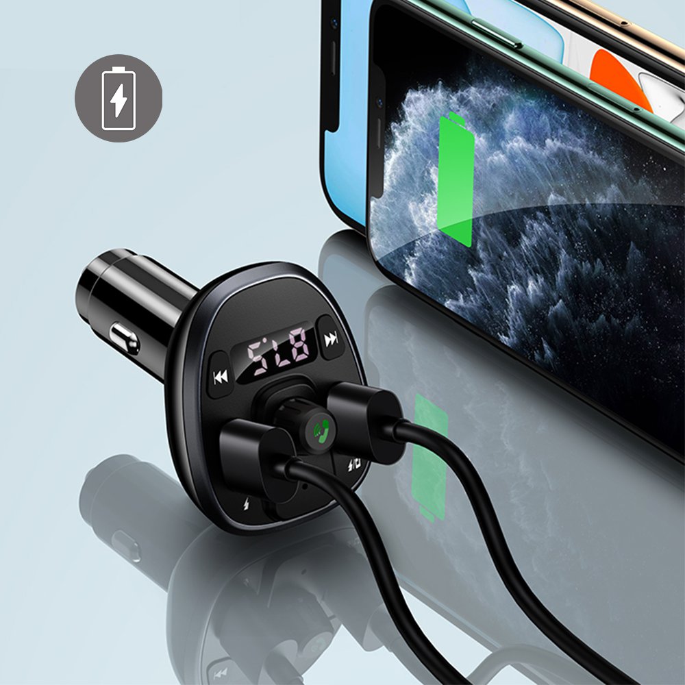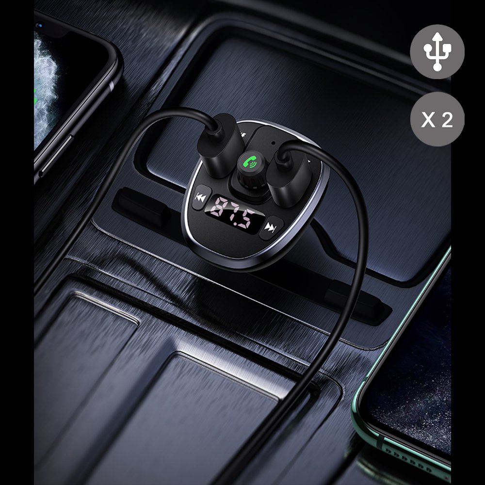 • Chargeur de voiture FM affichage numérique  Double USB 3.4A Noir