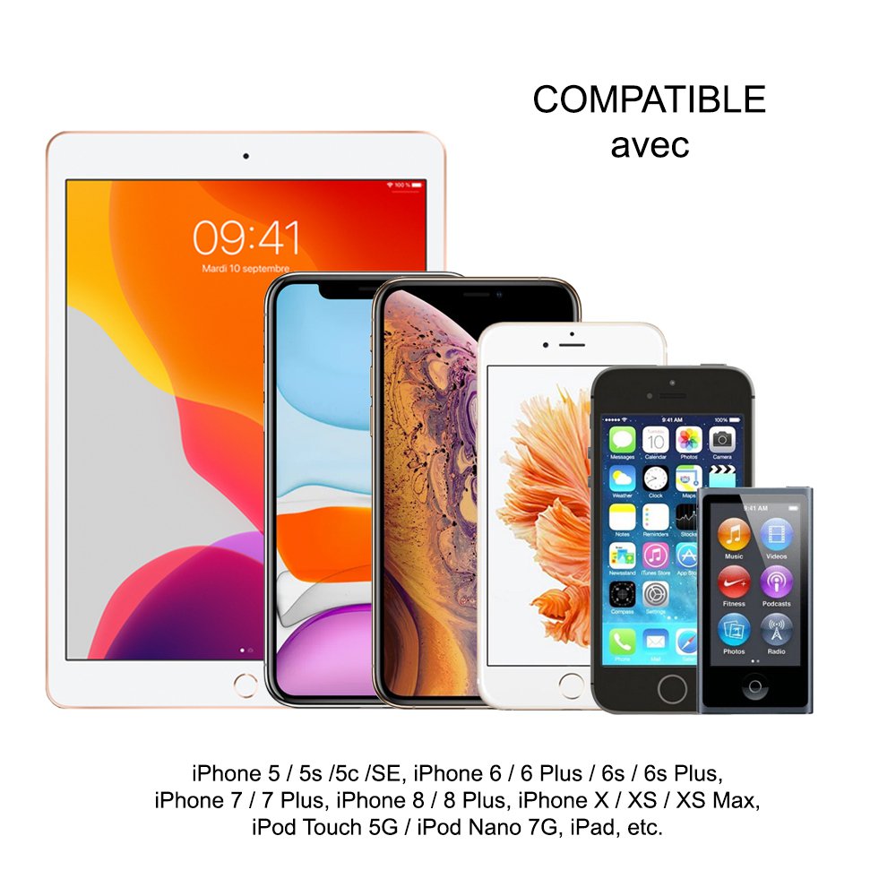 Disposant de la norme MFI, ce chargeur a été conçu pour se connecter spécifiquement à l'iPod, iPhone ou iPad et a été certifié par le développeur pour répondre aux normes de performance d'Apple.