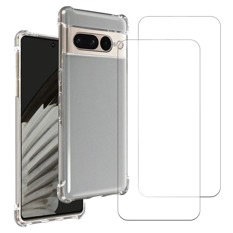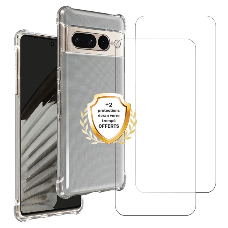 Coque Google Pixel 7 Antichoc coins renforcés Silicone + 2 Vitres en verre trempé Protection écran