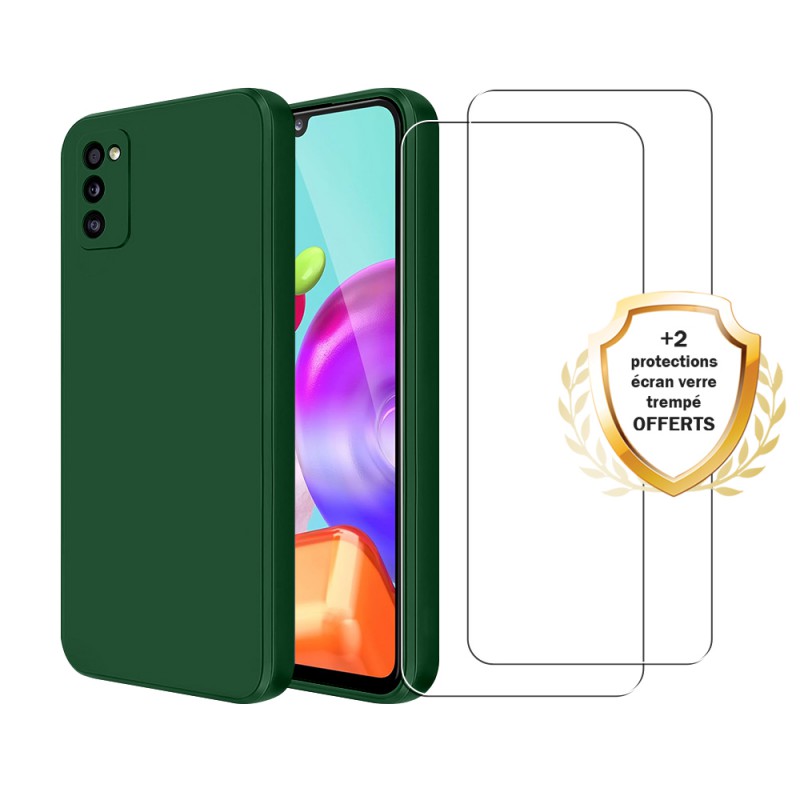• Coque Samsung Galaxy A41 Silicone liquide Vert Foret + 2 Vitres en Verre trempé Protection écran Antichocs