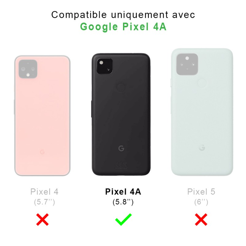 Pack coque anti-choc + 2 verres trempés, offrant une protection intégrale compatible avec votre Google Pixel 4A contre les chocs, les rayures et la poussière. Kit de nettoyage et d'installation inclus.