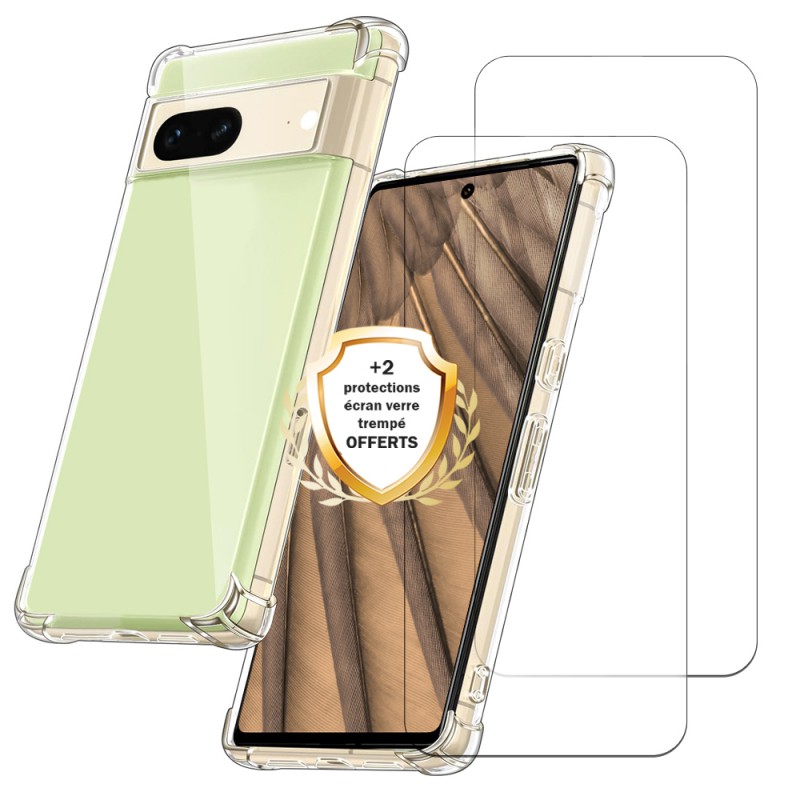Coque Google Pixel 7A Antichoc coins renforcés Silicone + 2 Vitres en verre trempé Protection écran