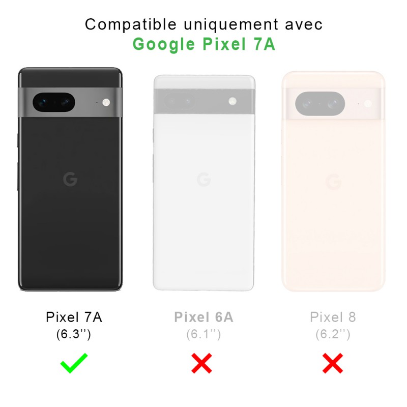 Pack coque anti-choc + 2 verres trempés, offrant une protection intégrale compatible avec votre Google Pixel 7A contre les chocs, les rayures et la poussière. Kit de nettoyage et d'installation inclus.