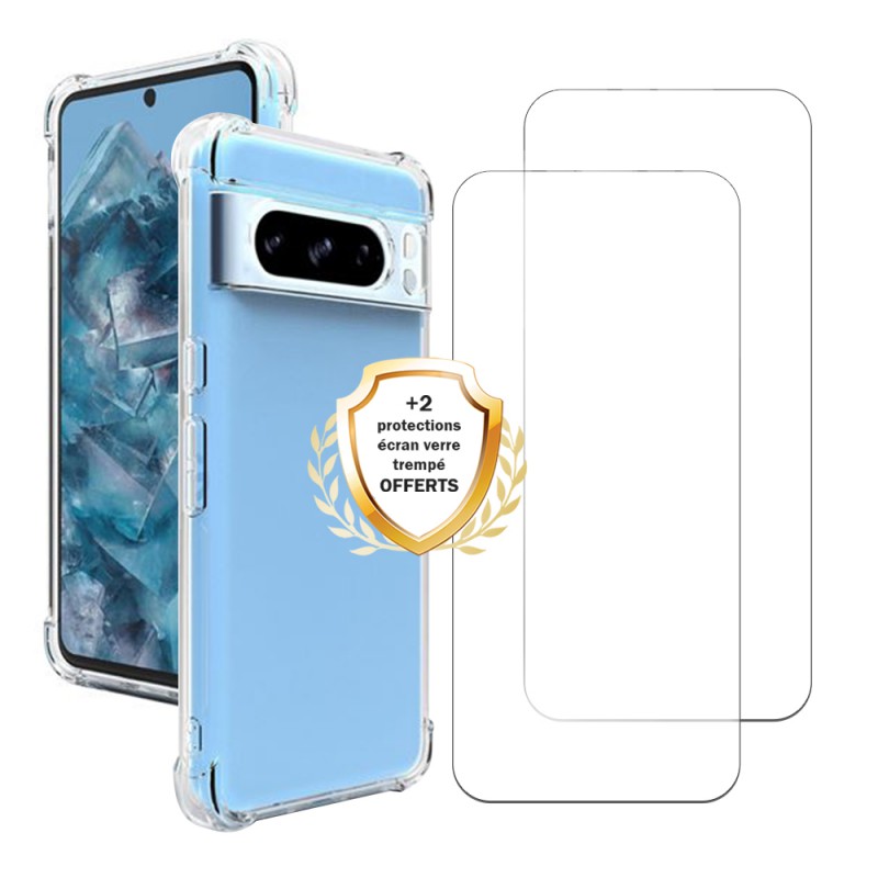 Coque Google Pixel 8 Pro Antichoc coins renforcés Silicone + 2 Vitres en verre trempé Protection écran