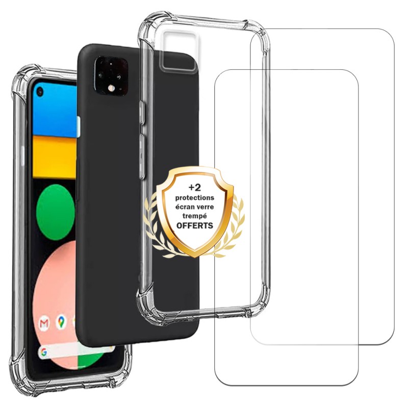 Coque Google Pixel 4 Antichoc coins renforcés Silicone + 2 Vitres en verre trempé Protection écran