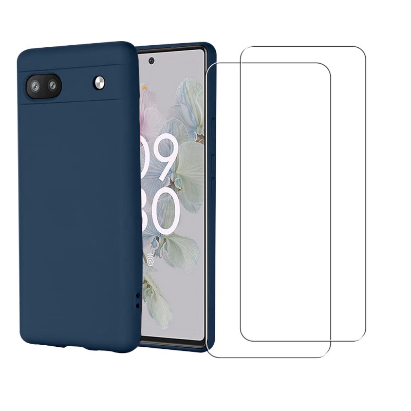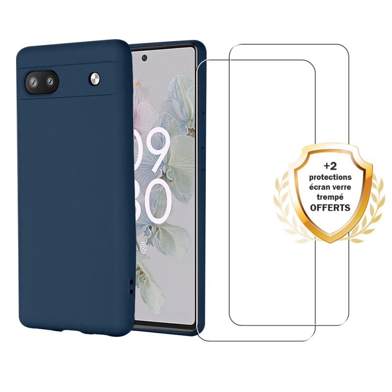 • Coque Google Pixel 6A Silicone liquide Bleue Marine + 2 Vitres en Verre trempé Protection écran Antichocs