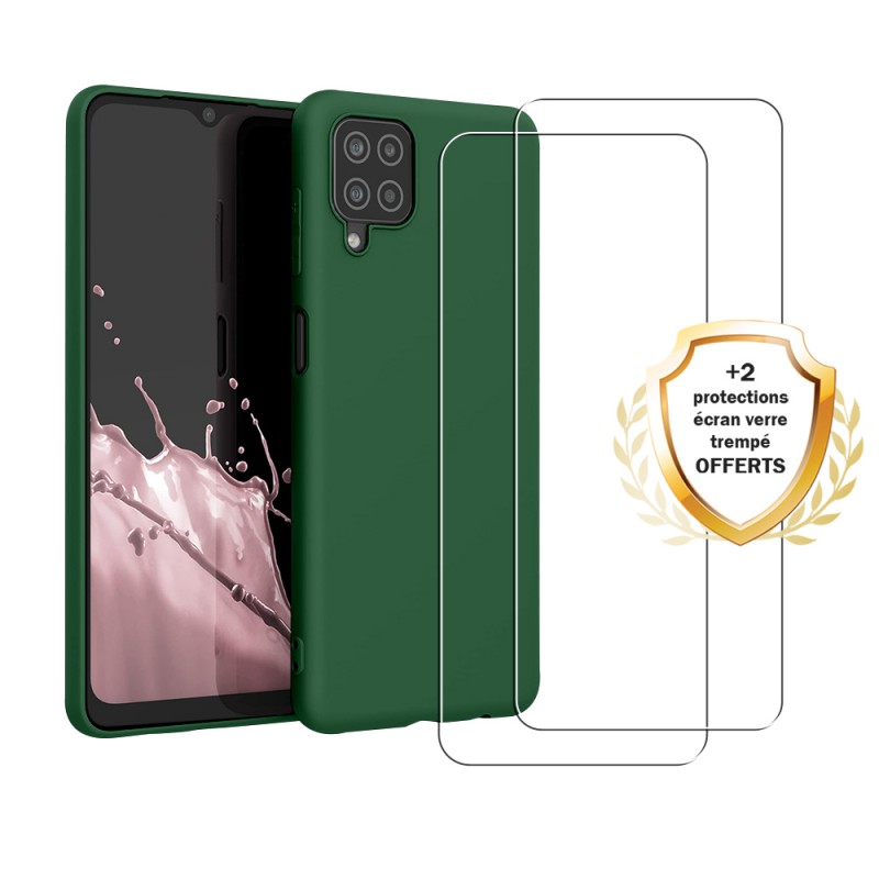 • Coque Samsung Galaxy A12 Silicone liquide Verte + 2 Vitres en Verre trempé Protection écran Antichocs