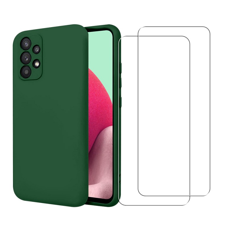 • Coque Samsung Galaxy A32 Silicone liquide Verte + 2 Vitres en Verre trempé Protection écran Antichocs