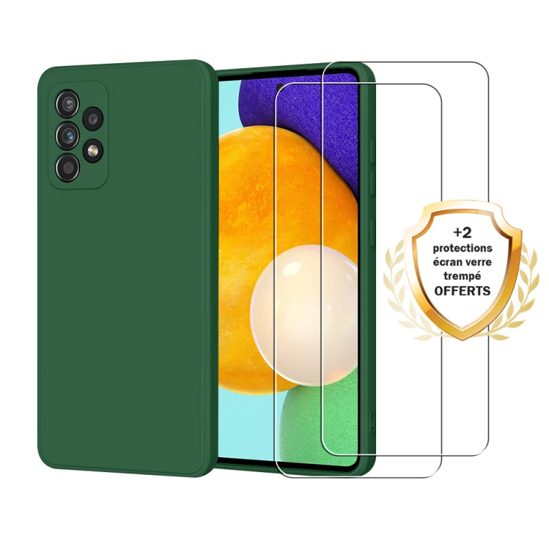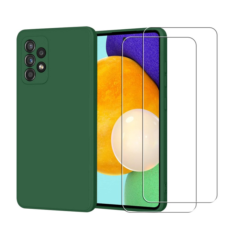• Coque Samsung Galaxy A52 Silicone liquide Verte + 2 Vitres en Verre trempé Protection écran Antichocs