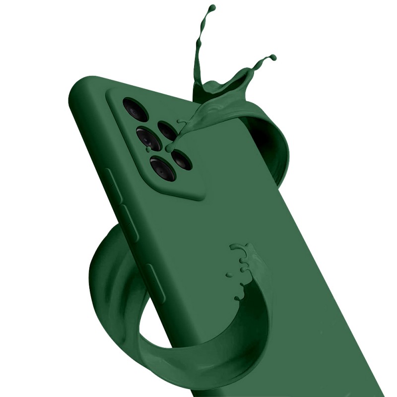 Pack coque silicone liquide verte + 2 verres trempés, offrant une protection intégrale compatible avec votre Galaxy A52 contre les chocs, les rayures et la poussière. Compatible avec chargement sans fil (induction). Kit de nettoyage et d'installation inclus.