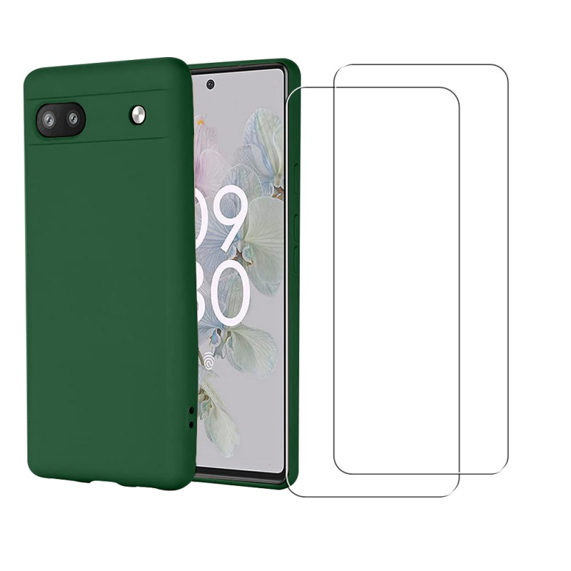 • Coque Google Pixel 6A Silicone liquide Verte  + 2 Vitres en Verre trempé Protection écran Antichocs