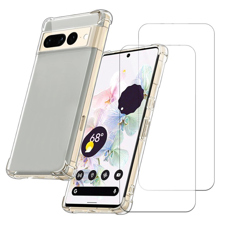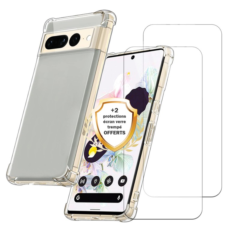 Coque Google Pixel 7 Pro Antichoc coins renforces Silicone + 2 Vitres en verre trempe Protection ecran