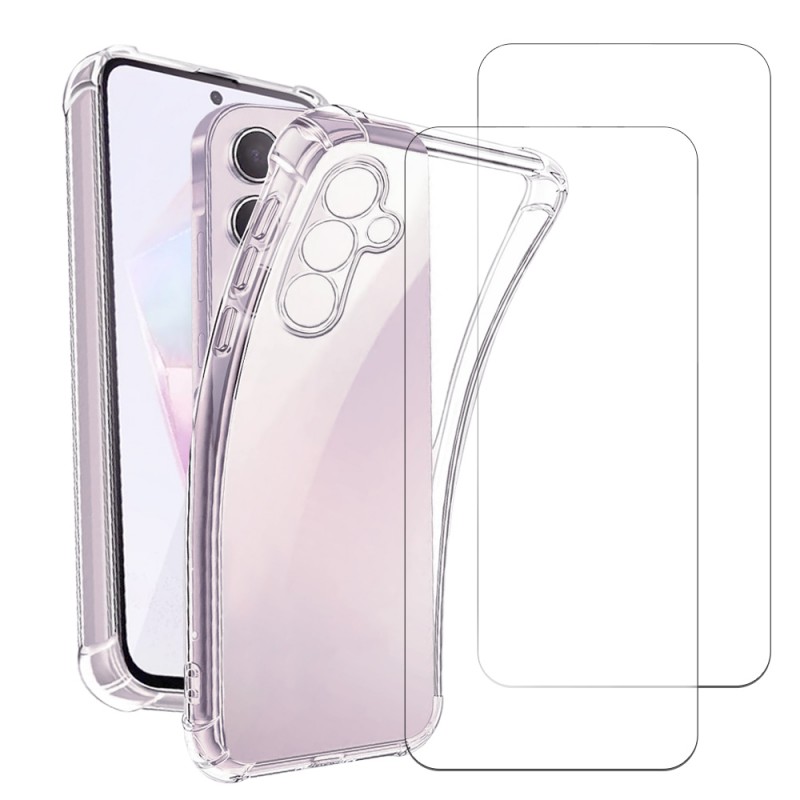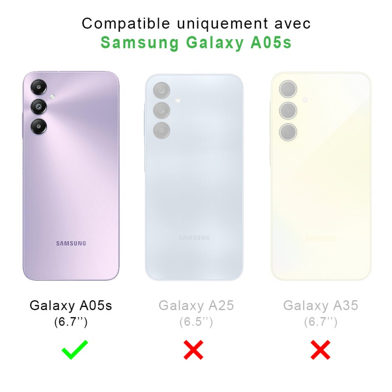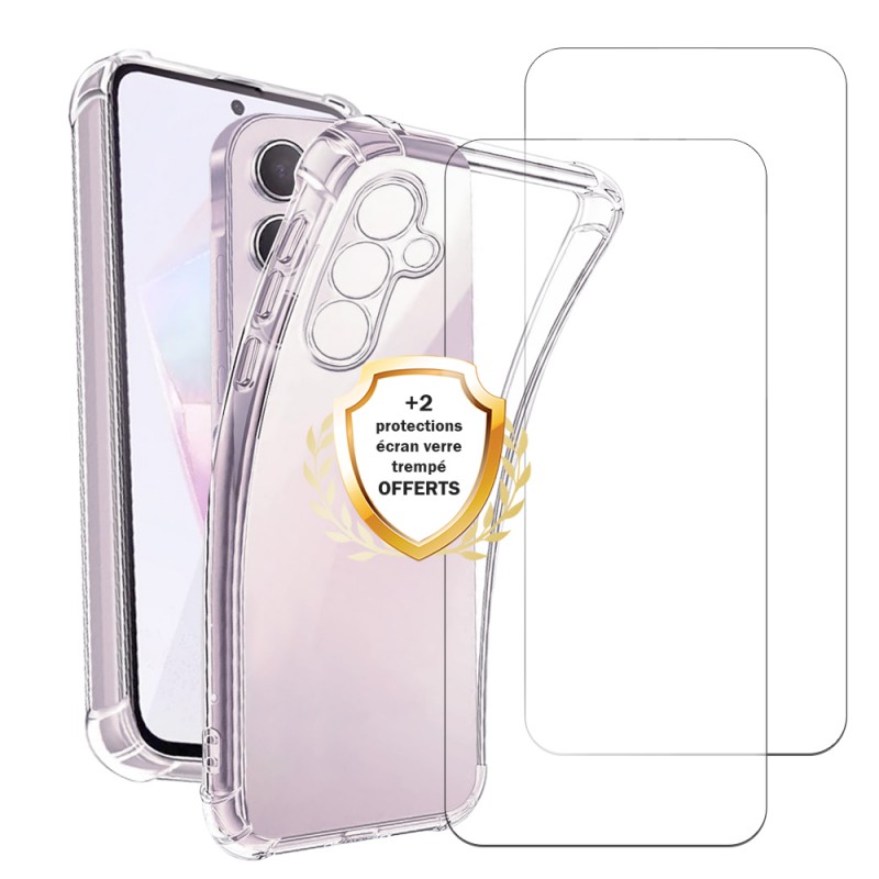 Pack coque anti-chocs Galaxy A05s + 2 verres trempés pour une protection intégrale contre les chocs, les rayures et la poussière. Les fonctionnalités tactiles de l'écran sont préservées.