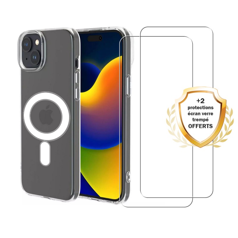 • Coque iPhone 14 Plus Transparente Compatible Magsafe + 2 Vitres Protection Ecran