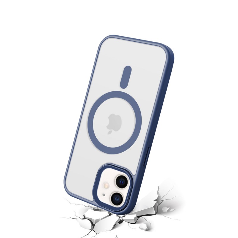 • > Coques>Coque compatible magsafe>Coque iPhone 12 Mini Bleue et transparente fumée Compatible Magsafe + 2 Vitres Protection ecran