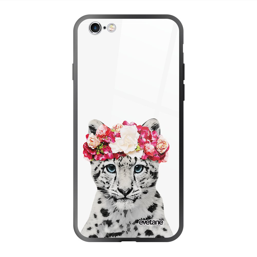 • > Coques>Coque en verre trempé iPhone 6 Plus / 6S Plus Leopard Couronne Ecriture Tendance et Design Evetane.
