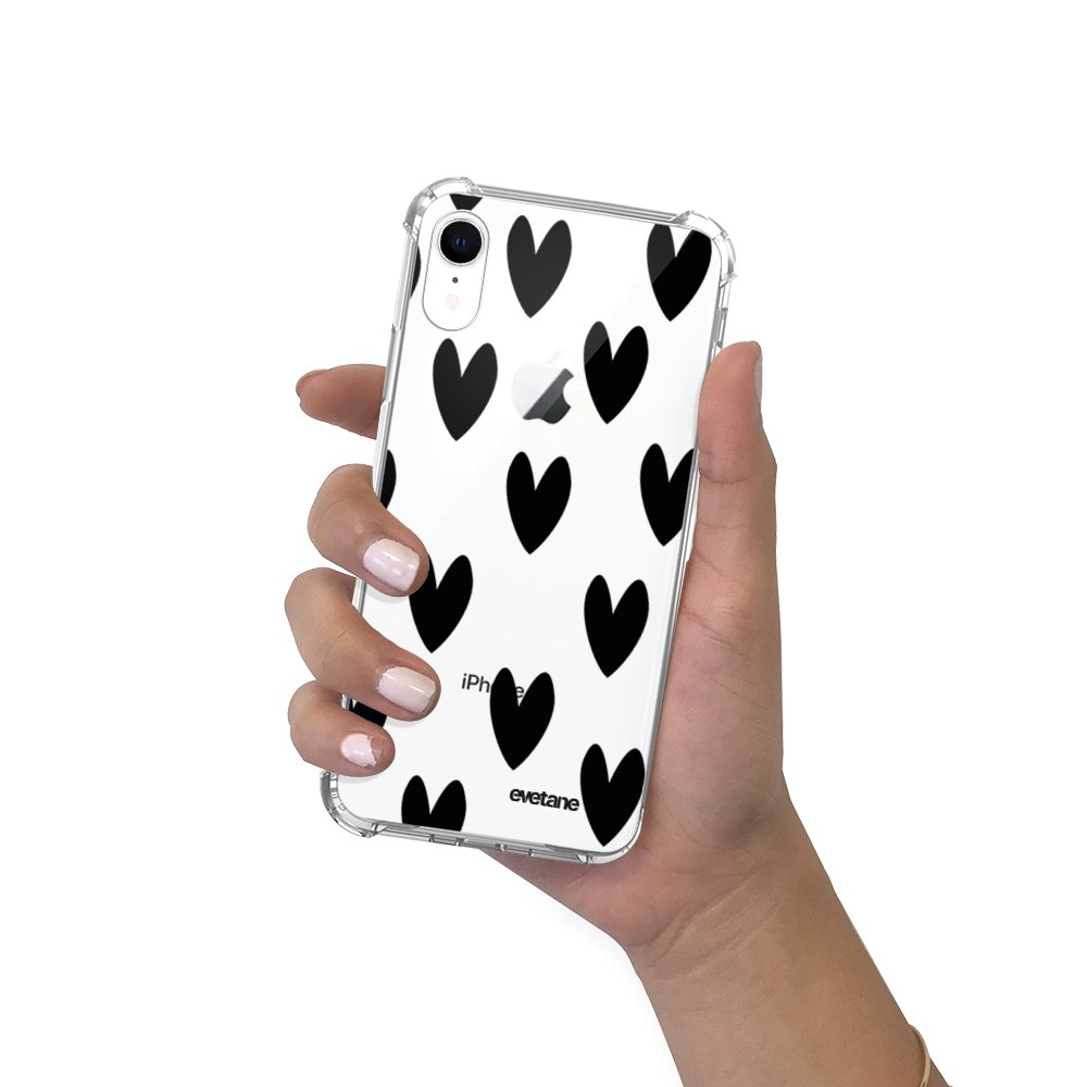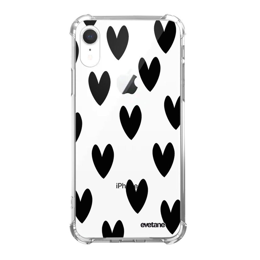 • Coque iPhone Xr anti-choc souple angles renforcés transparente Coeurs Noirs Evetane.