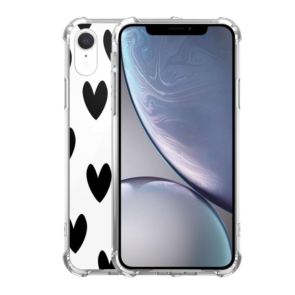 Coque iPhone Xr anti-choc souple avec angles renforcés Cœurs Noirs Tendance Evetane...