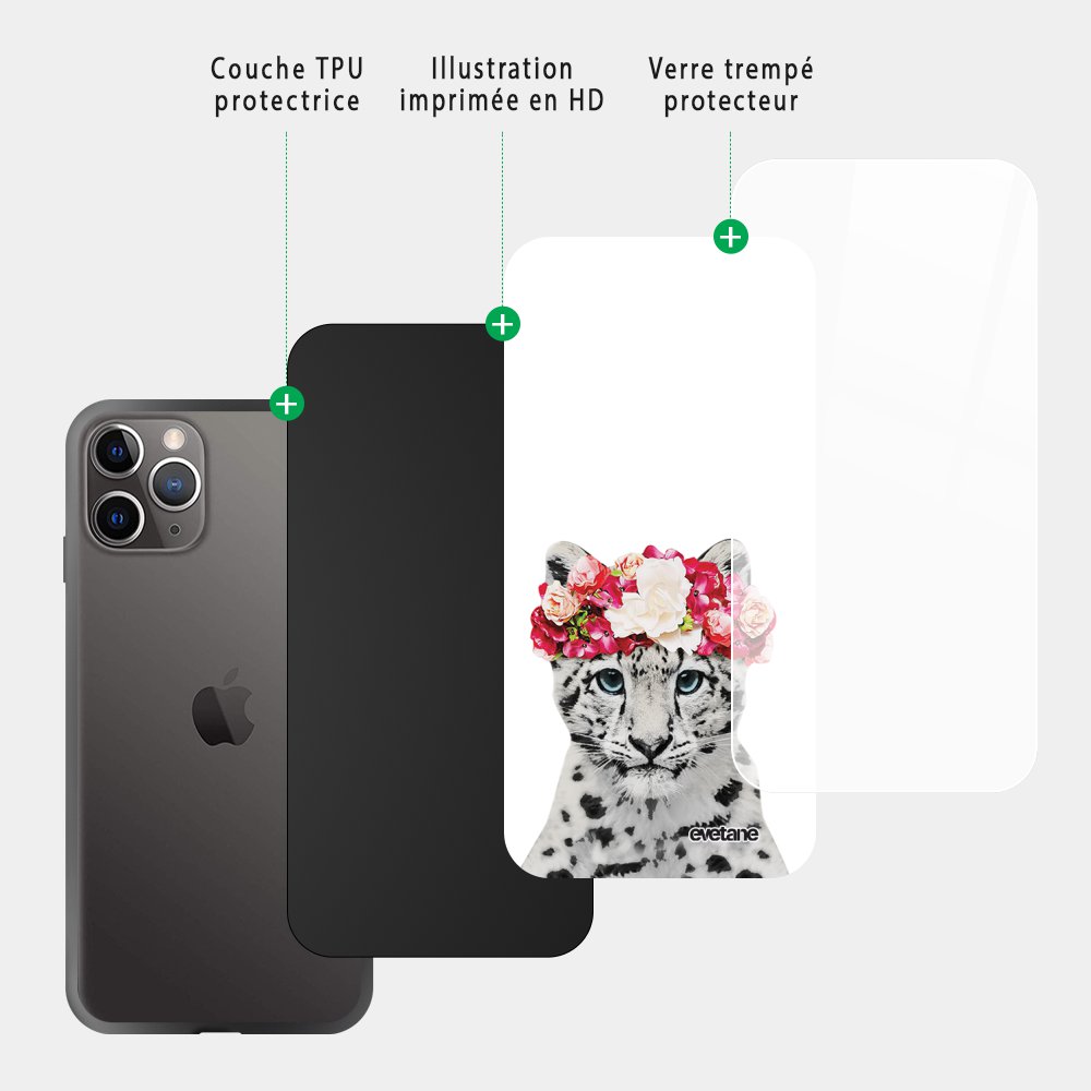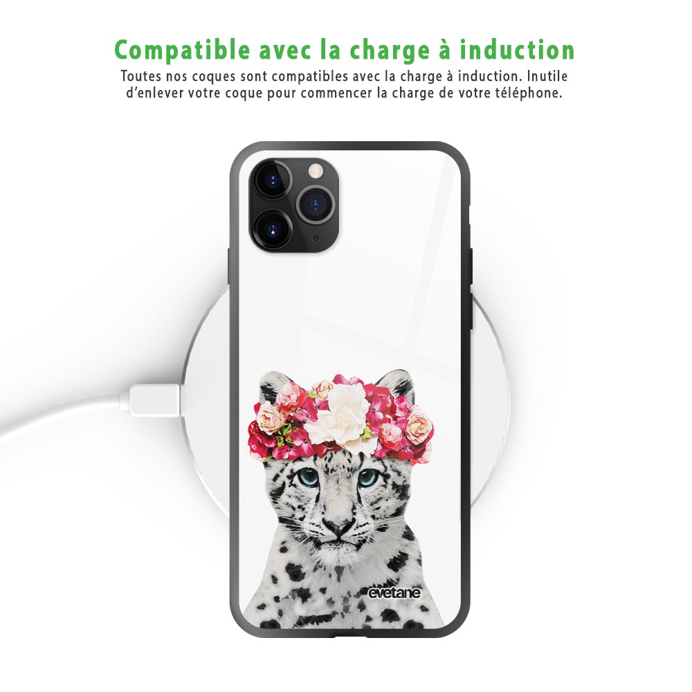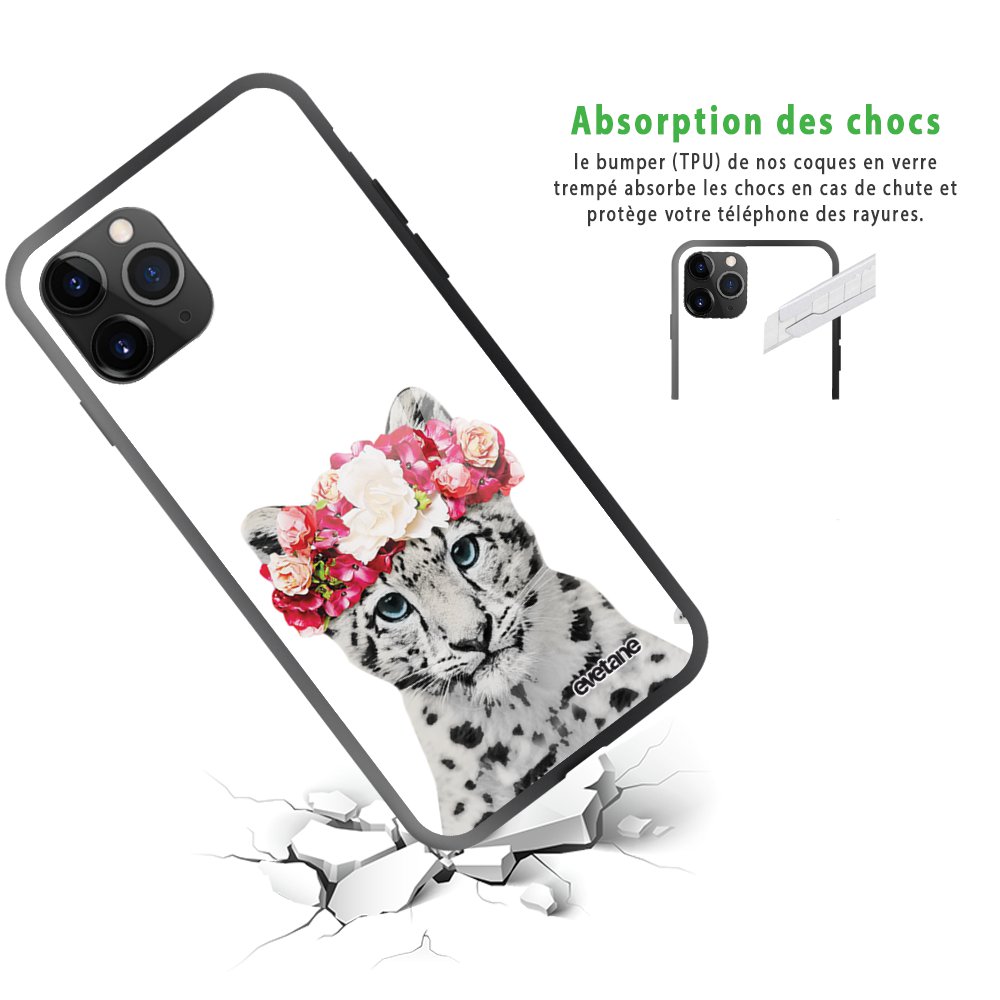 Coque en verre trempé iPhone 11 Pro Max Leopard Couronne Ecriture Tendance et Design Evetane.