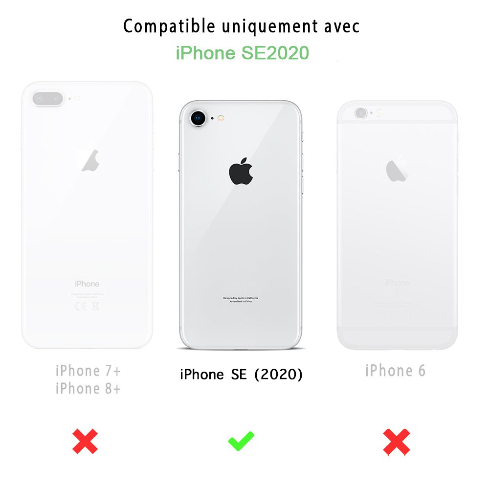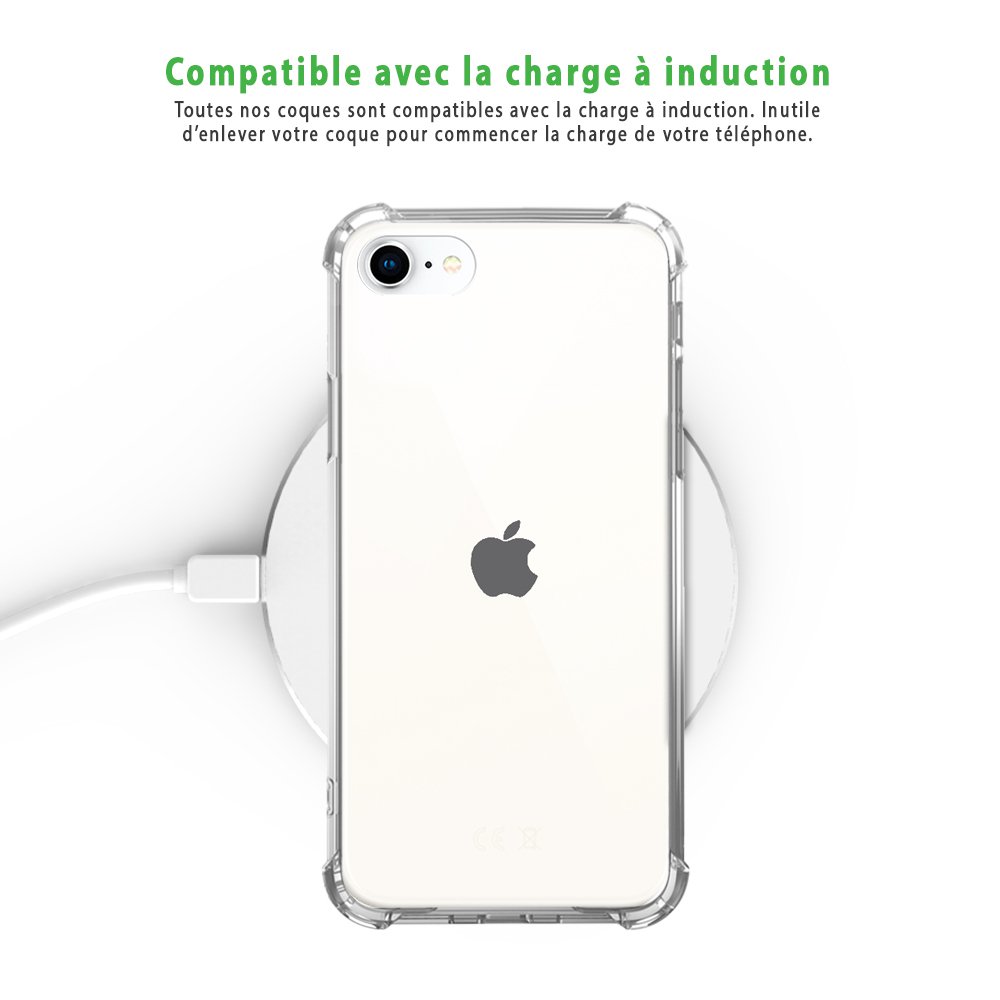 Coque anti-choc compatible avec Apple iPhone SE 2020. Cette coque avec 4 coins renforcés augmente le niveau de protection, même en cas de chute. Pack coque anti-choc + 2 verres trempés pour une protection intégrale compatible avec iPhone contre les chocs, les rayures et la poussière. Les fonctionnalités tactiles de l'écran sont préservées. Compatible avec chargement sans fil (induction)