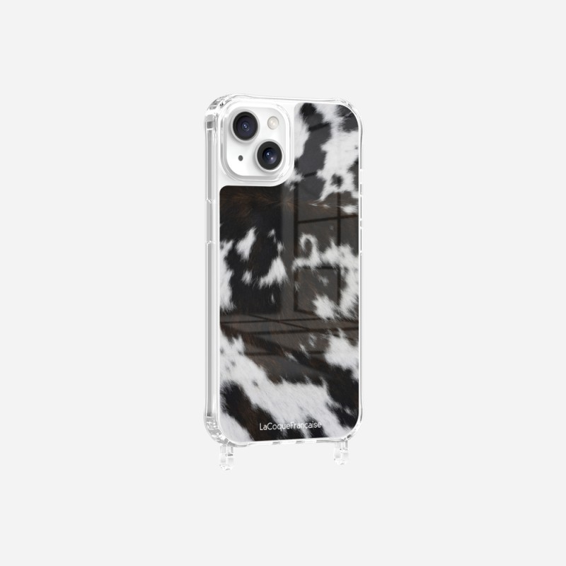 Nouveau Coque iPhone 13 avec anneau glossy transparente Vache bicolore Design La Coque Francaise.