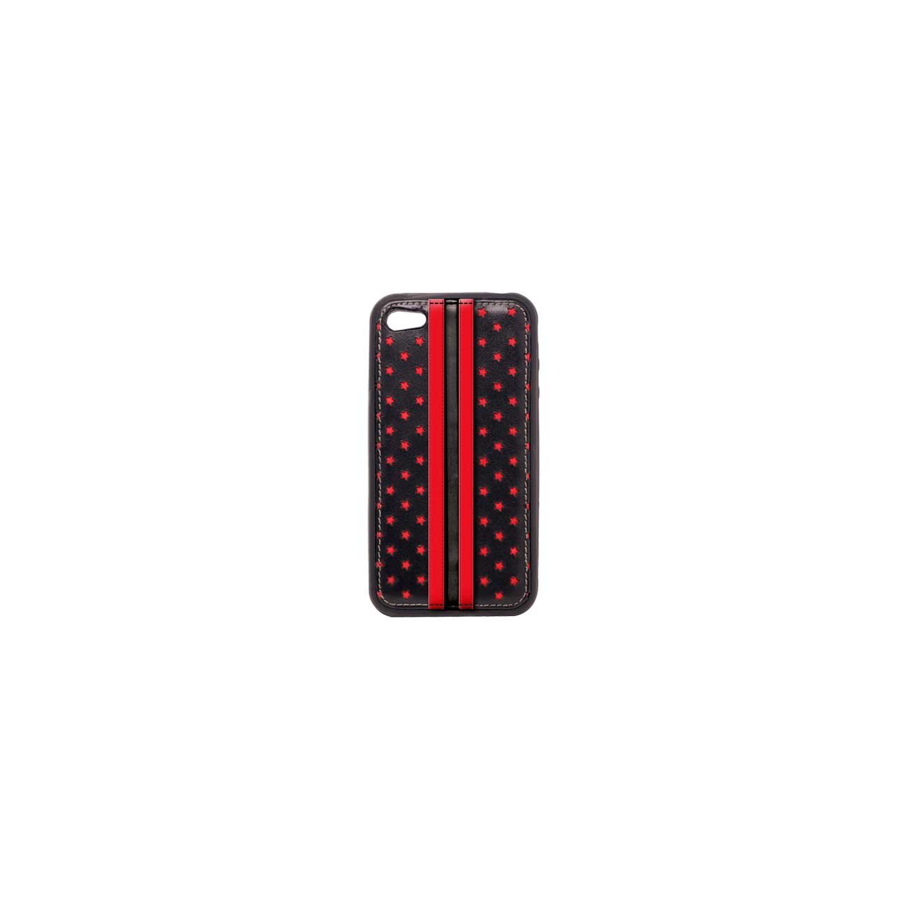 Coque bi-matières noire avec étoiles micro perforées rouges, et rayures fines Racing rouges, pour iPhone 4