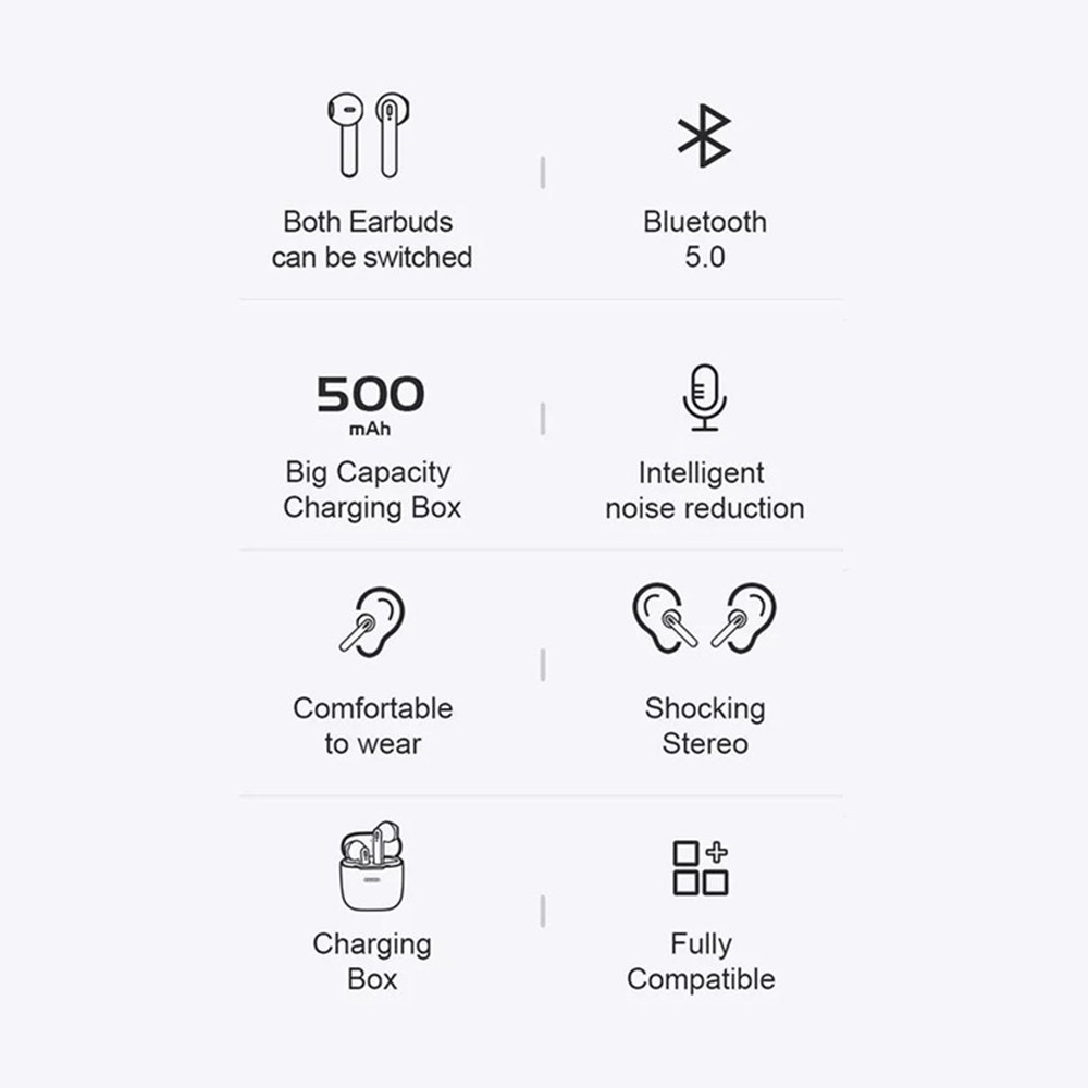 S/N > 95 - Le kit contient : écouteurs, boîte de chargement, câble de charge micro USB, manuel d'utilisation.