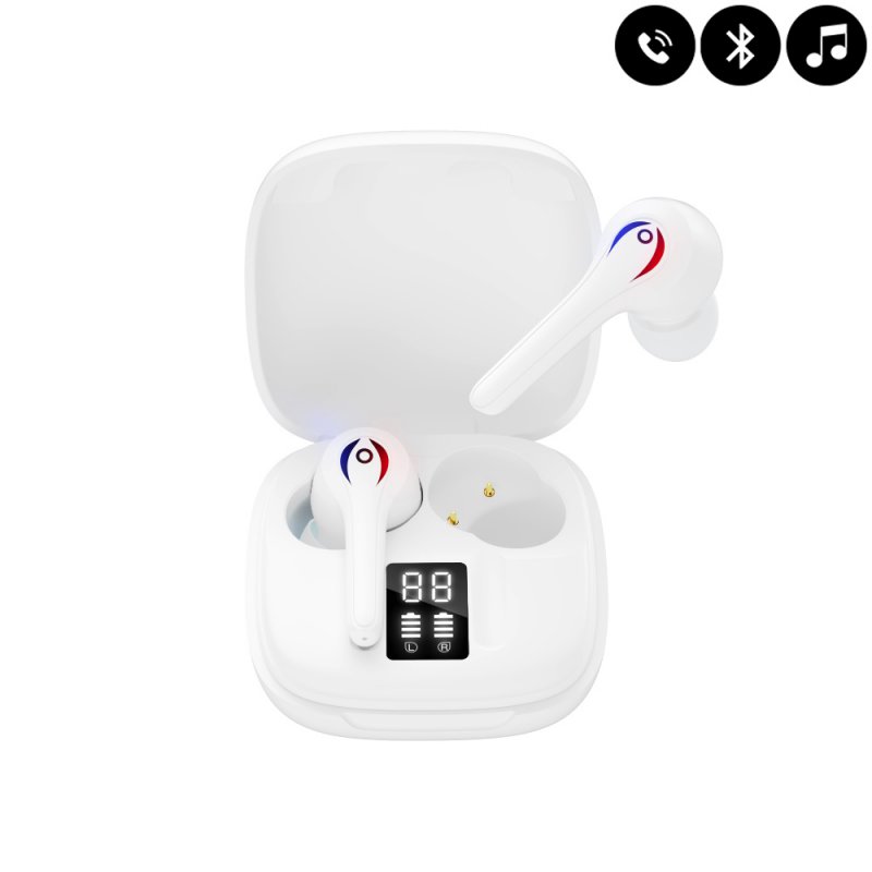 • > High Tech>Audio>Ecouteurs Bluetooth>Ecouteurs sans fil Bluetooth avec écran led - Blanc