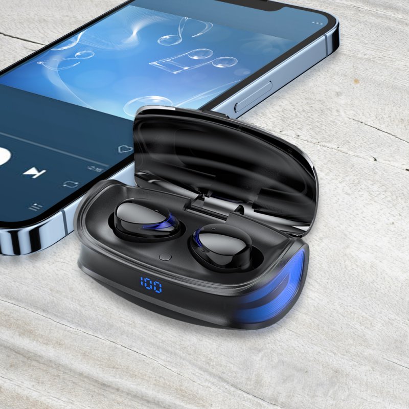 Ecouteurs Bluetooth intra-auriculaires avec écran LED avec un boîtier de chargement. Les écouteurs prennent en charge la technologie TWS (True Wireless Stereo) - les deux écouteurs se connectent l'un à l'autre pour former un ensemble stéréo sans fil. Un boîtier portable avec une batterie intégrée, en plus de la fonction de charge, vous permet de ranger en toute sécurité les écouteurs dans votre poche, votre sac ou votre sac à dos. Libérez vos mains et écoutez de la musique, la radio Internet tout en travaillant, en marchant, en vous entraînant ou en conduisant. Les écouteurs sont une solution idéale pour les utilisateurs de smartphones, ordinateurs, ordinateurs portables, tablettes et autres appareils prenant en charge la technologie Bluetooth. Ils sont compatibles avec la plupart des appareils Android et iOS. Les écouteurs ont également un microphone, ce qui vous permet de passer facilement des appels vocaux. La durée des appels / écoute de musique sur une charge complète est d'environ 300 minutes (selon le niveau de volume), grâce à l'utilisation de la technologie Bluetooth 5.0 à économie d'énergie.