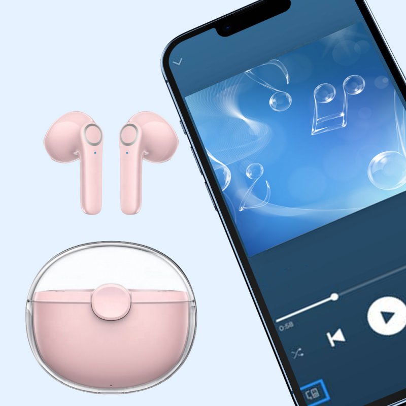 Ecouteurs Bluetooth Grâce à ces écouteurs confortable à porter, profitez d'un son de qualité avec une totale immersion dans votre musique, meilleure transmission et le son stéréo 3D; vous pouvez donc les utiliser en toute sécurité lors de vos activités sportives. Les écouteurs se connectent automatiquement lors de la sortie du boîtier au dernier appareil connecté. Vous pouvez accéder aux fonctionnalités grâce au bouton tactile comme passer à la chanson suivante ou précédente (appuyer 2 sec sur doirt ou gauche) , augmenter ou baisser le volume, lecture/ pause (douple tap sur le droit) ou répondre/raccrocher(double tap droit ou gauche), rejeter un appel (appuyer 2 sec sur droit ou gauche).... Les ecouteurs peuvent être connecter ensemble comme pour écouter votre musique ou séparement lors de votre conduite afin de laisser un maximum d'attention sur la route.1. BT 5.1 mis à niveau, connexion rapide et stable.2. Stéréo double canal, qualité sonore HiFi immersive.3. Microphone intégré, contrôle tactile sensible.4. Boîtier transparente, couleur macaron unique5. Connexion automatique à l'ouverture du boîtier une fois une première connexion effectuée6. Réduction de bruit qui permet de diminuer le bruit environnant lors de vos appels7. Toucher tactil sur les ecouteurs qui permet de modifier le volume, la chanson,décrocher ou raccrocher etc...Matériel: ABS + PCVersion BT : 5.1Portée de connexion : ≤ 12 mètresDiamètre du haut-parleur : 13 mmSensibilité du haut-parleur : 115±3dBImpédance du haut-parleur : 32 ΩRéponse en fréquence du haut-parleur : 20 Hz à 20 KHzRapport signal/bruit : > 70Poids des écouteurs : environ 3 g x 2Capacité de la batterie des écouteurs : 30 mAhAutonomie : Environ 5 heuresAutonomie d'appel : Environ 4 heuresTemps de charge des écouteurs : environ 1 heurePoids du boîtier de charge : environ 35,5 gCapacité de la batterie du boîtier de charge : 300 mAhTemps de charge pour l'étui : environ 1 heureEntrée du boîtier de charge : 5 VAutonomie en veille : environ 25 heuresTaille du boîtier de charge : 56 x 50 x 26,7 mm.Compatibilité : Pour les appareils Apple/Android avec fonction BT