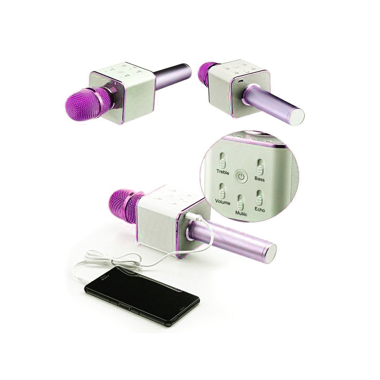 Bouton de réglage professionnel, High pitch / bass / volume / Accompagnement / réverbération, tous peuvent être réglés via cette microphone, le microphone sans fil Bluetooth et le haut-parleur 2 en 1, peuvent fonctionner indépendamment sans connexion supplémentaire.