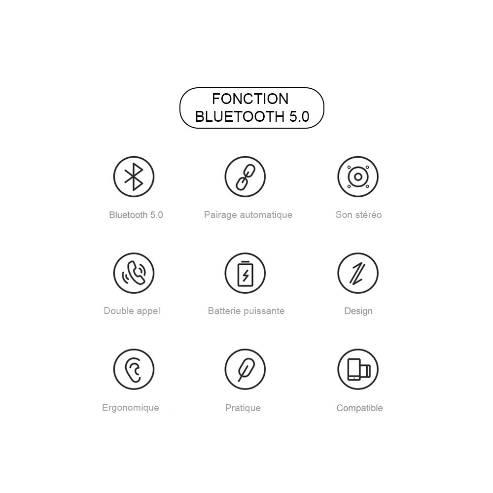 Ecouteurs Bluetooth V5 Noir