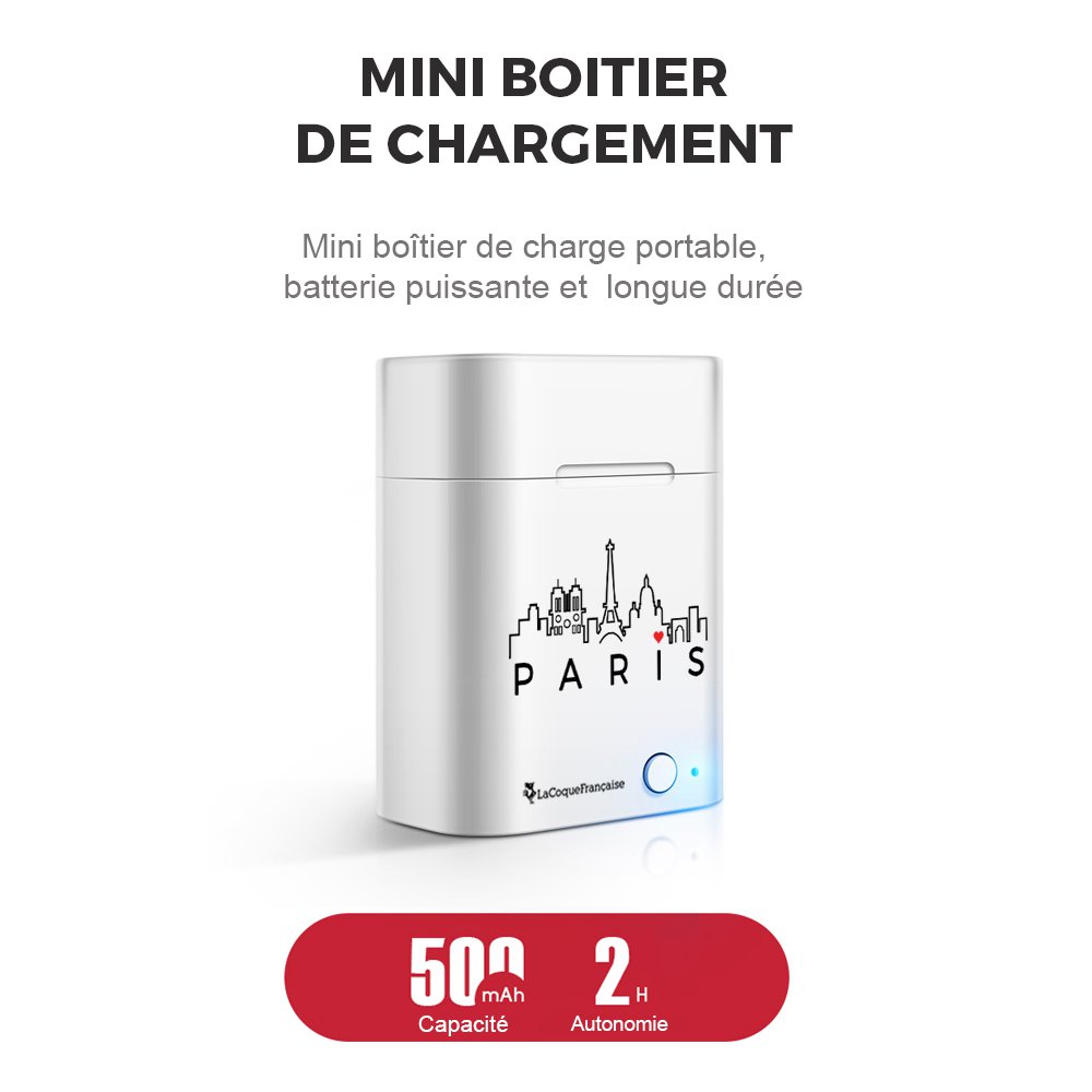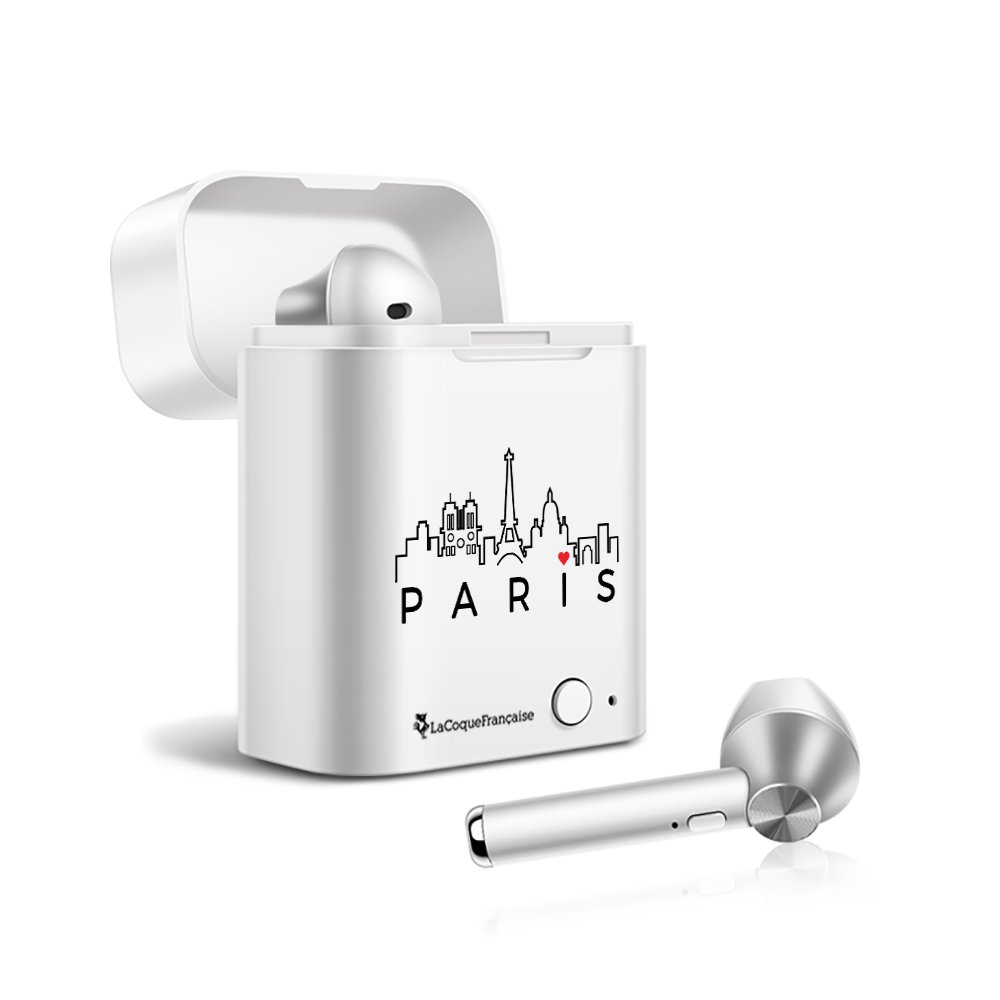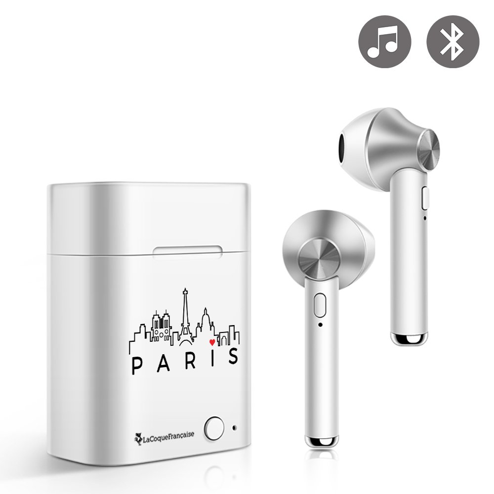 • Ecouteurs Sans Fil Bluetooth Argent argent Skyline Paris Ecriture Tendance et Design La Coque Francaise.