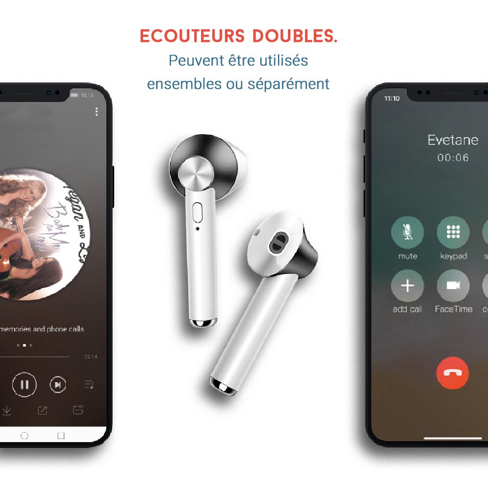 Découvrez notre gamme Evetane d’écouteurs Bluetooth sans fil. Confortables, ils offrent une excellente qualité audio qui vous plongera au cœur de votre musique. Les écouteurs sont livrés avec un boîtier rechargeable. Élégants et performants, ils vous accompagnent au quotidien. Ils ont une conception ergonomique afin que vous puissiez bien les positionner dans vos oreilles. Ils disposent d’une portée de 10 mètres de transmission. Connection et détection facile à utiliser. Le boîtier à une Led lumineuse qui vous indique son niveau de charge. Conception sans fil, vous pouvez connecter les écouteurs séparément. Vous pourrez ainsi utiliser indépendamment uniquement l’oreillette gauche ou droite seule ou les utiliser ensemble par paire pour un son stéréo. Le boîtier de chargement peut charger les écouteurs et avoir la fonctionnalité d’étui de rangement pour les protéger des dommages. Bonne qualité sonore sans aucun bruit. Bluetooth 5.0