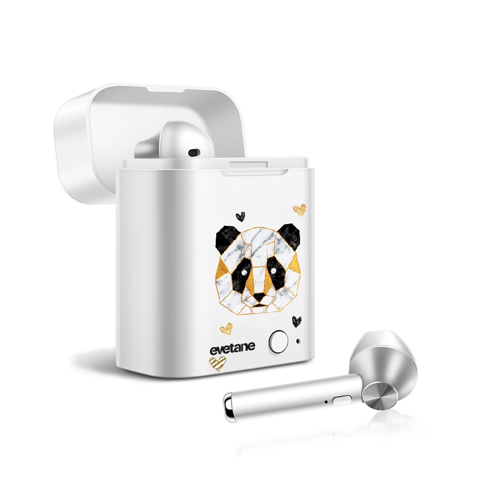 Ecouteurs Sans Fil Bluetooth Argent Panda Géométrique Evetane