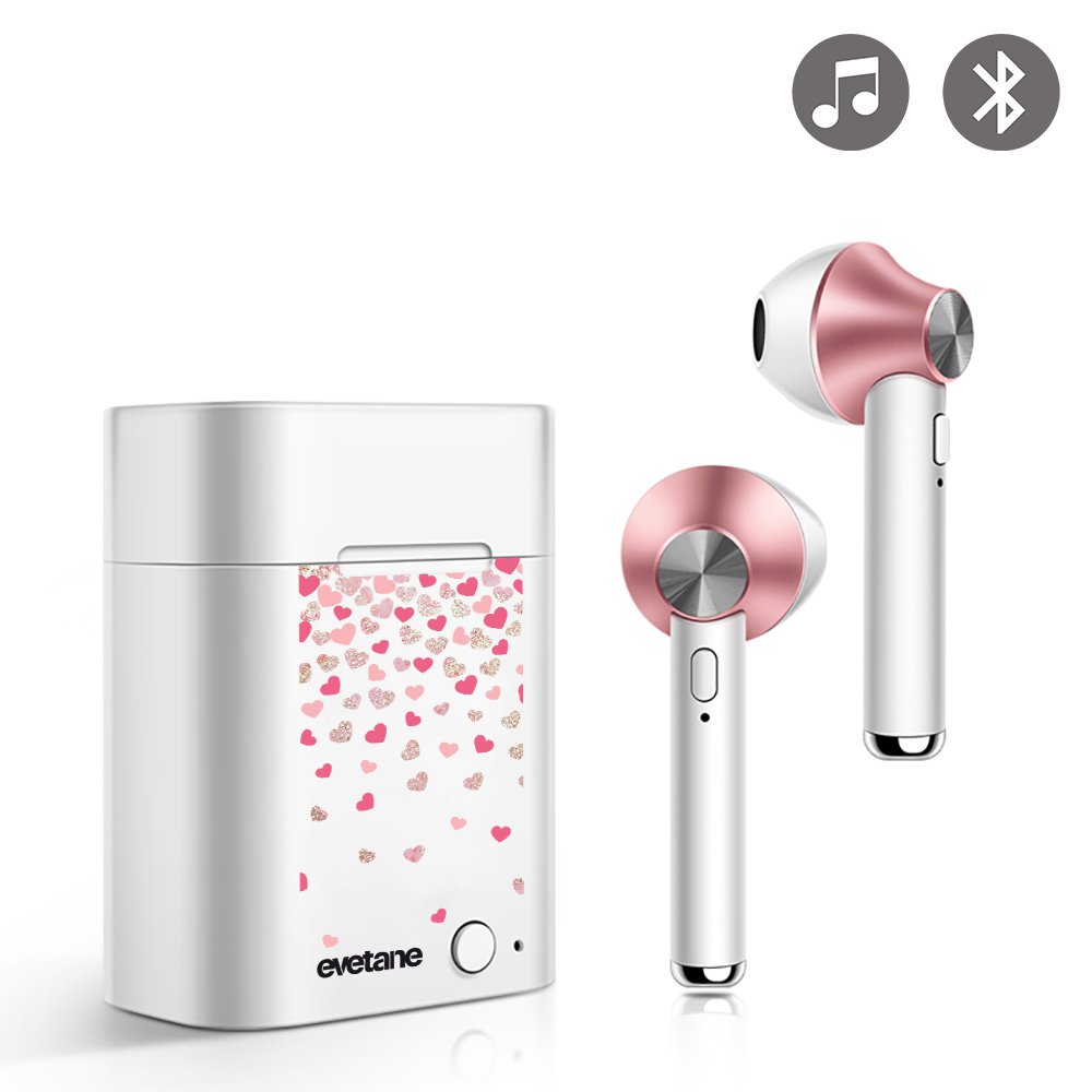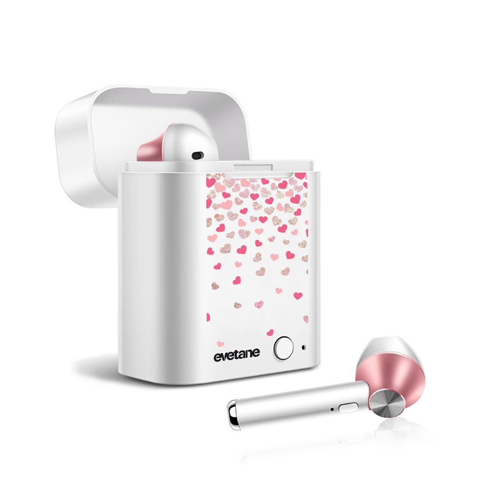 • > High Tech>Audio>Ecouteurs Bluetooth>Ecouteurs Sans Fil Bluetooth Rose Gold rose gold Coeurs en confettis Ecriture Tendance et Design Evetane.